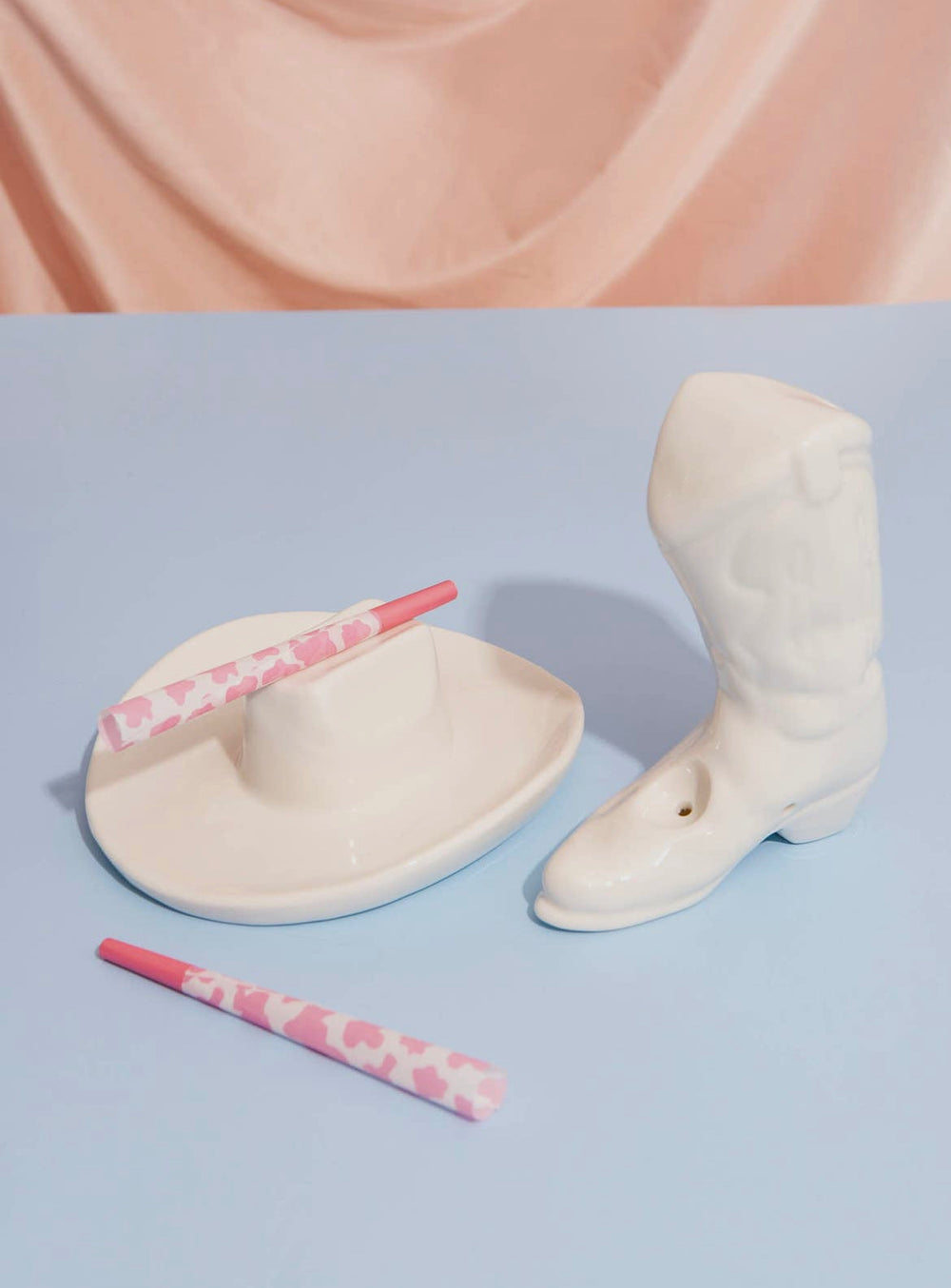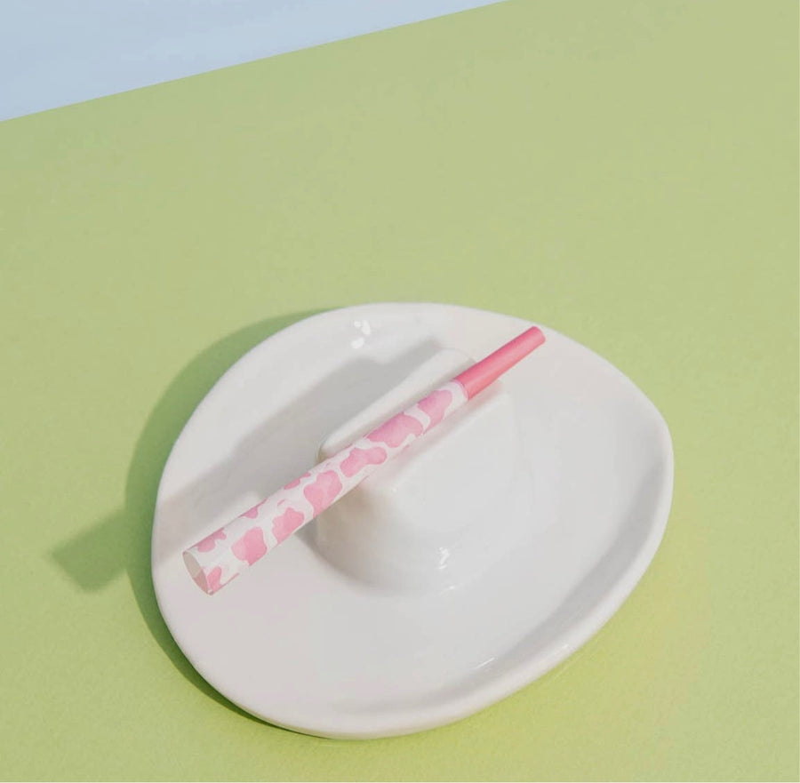 Giddy-up smokers, this cowboy hat ashtray is a delight to use. Your joint or cigarette sits perfectly in the top groove of the hat & you can ash into the brim of the hat.